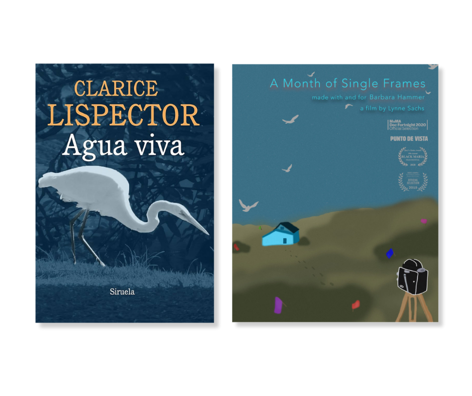 La primera sesión gira alrededor de Agua viva de Clarice Lispector y el cortometraje A Month of Single Frames de Lynne Sachs y Barbara Hammer. Nos detenemos en la experiencia del presente, en la percepción del instante y en la alegría como forma de insistencia vital.